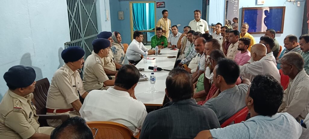 थानाध्यक्ष शैलेश कुमार ने सर्वप्रथम बैठक में पहुंचे सभी जनप्रतिनिधियों, प्रबुद्ध नागरिकों और गणमान्य व्यक्तियों से परिचय प्राप्त किया। उन्होंने कहा कि जन्माष्टमी और चेहल्लुम पर्व हमारे समाज की सांस्कृतिक और धार्मिक विविधता के प्रतीक हैं, जिन्हें आपसी भाईचारे और सौहार्दपूर्ण वातावरण में मनाया जाना चाहिए। वहीं इस बैठक में एसडीपीओ कुमार देवेंद्र ने कहा कि पर्व के दौरान किसी भी प्रकार की अप्रिय घटना को रोकने के लिए प्रशासनिक स्तर पर पूरी चौकसी बरती जाएगी। इसके लिए दंडाधिकारी, पुलिस पदाधिकारी और पर्याप्त संख्या में पुलिस बल की तैनाती की जाएगी। पुलिस गश्ती दल सक्रिय रहेंगे तथा संवेदनशील स्थानों पर विशेष निगरानी रखी जाएगी। एसडीपीओ ने जनता से अपील करते हुए कहा कि पुलिस और पब्लिक के बीच मैत्रीपूर्ण संबंधों को मजबूत करना समय की आवश्यकता है। उन्होंने कहा कि आम जनता का सहयोग प्रशासन के प्रयासों को सफल बनाएगा। बैठक में उपस्थित विभिन्न जनप्रतिनिधियों और प्रबुद्ध नागरिकों ने भी अपने सुझाव रखे। सभी ने एक स्वर में संकल्प लिया कि पर्व के दौरान नगर में सौहार्द और भाईचारा बनाए रखा जाएगा, अफवाहों पर ध्यान नहीं दिया जाएगा, और किसी भी समस्या की सूचना तत्काल पुलिस को दी जाएगी। बैठक के अंत में थानाध्यक्ष शैलेश कुमार ने सभी का धन्यवाद देते हुए भरोसा जताया कि नगरवासियों के सहयोग से दोनों पर्व शांतिपूर्ण और सफलतापूर्वक संपन्न होंगे। उन्होंने कहा कि आपसी समझ और सहयोग ही सामाजिक एकता की असली पहचान है। इस अवसर पर राकेश सिंह, मुन्ना सिंह, सतीश वर्मा,मनोज सिंह ,राहुल सिंह,मदन यादव ,रविरंजन उर्फ लालाबाबू यादव , निजामुद्दीन अंसारी, विनोद कुशवाहा , इजहार सिद्दीकी संजय यादव, अनिल सिंह समेत अन्य गणमान्य लोग एवं पुलिस पदाधिकारी आदि मौजूद रहे।