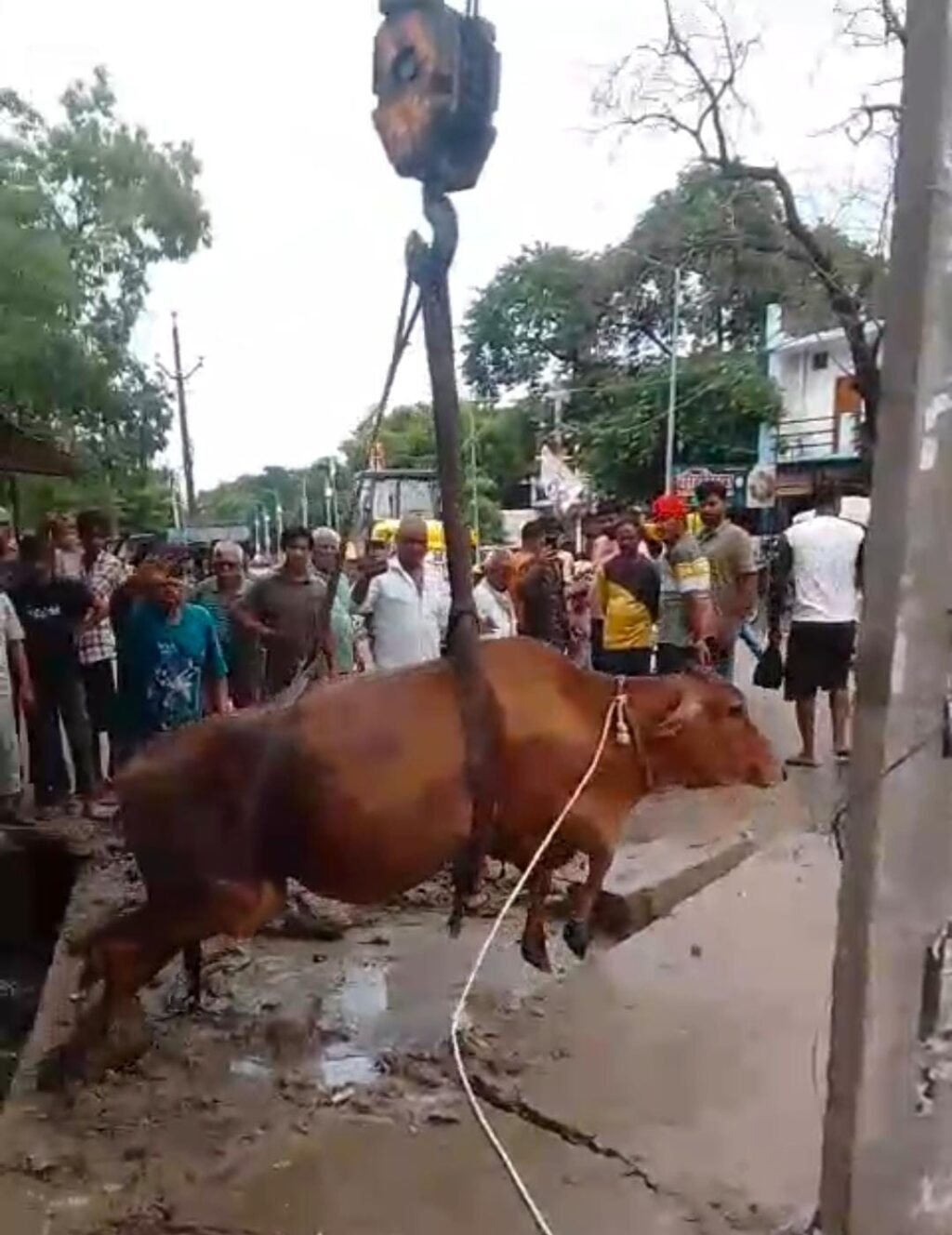 ईओ राजमणि वर्मा ने गाय के रेस्क्यू लिए तत्काल नगरपालिका की टीम को मौके पर भेजा। जेसीबी से नाले का ढक्कन तोड़ा गया। पहले गाय को रस्सी की सहायता से बाहर निकालने का प्रयास किया। लेकिन भारी भरकम शरीर के कारण गाय को बाहर निकालने में काफी दिक्कत हो रही थी। इसके बाद गाय को क्रेन की मदद से रस्सियों से बांधकर बाहर निकाला गया। इस प्रयास में नगर पालिका कर्मियों को काफी मशक्कत करनी पड़ी। गाय एकदम स्वस्थ है। गाय को निकालने में नगरपालिका की टीम के साथ स्थानीय लोगों ने भी योगदान दिया।