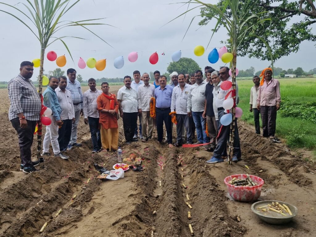 बलरामपुर।बलरामपुर के महाप्रबंधक (गन्ना) डा० आर०पी०शाही, गन्ना विकास परिषद,उतरौला के ज्येष्ठ गन्ना विकास निरीक्षक नरेन्द्र सिंह,सहकारी गन्ना बिकास समिति के अध्यक्ष तोताराम वर्मा व सदस्य संचालक मंडल की मौजूदगी में गन्ना टीम के सदस्य सन्तोष कुमार मिश्रा,वरिष्ठ प्रबन्धक गन्ना,बिजय कुमार पांडेय अपर प्रबन्धक (गन्ना) आई०जी०चौधरी सहायक प्रबन्धक(गन्ना) के द्वारा कृषक रमेश चन्द्र दूबे पुत्र जगदीश प्रसाद दूबे,ग्राम दौलताबाद के प्लॉट पर उन्नतिशील गन्ना प्रजाति कोलख0-14201 की बुआई की श्री गणेश कराकर मॉनसून बुआई अभियान का शुभारंभ किया है। वैज्ञानिक एवं तकनीकी बुआई बिधि से बुवाई कराते हुए मृदा एवं बीज उपचार भी कराया गया।