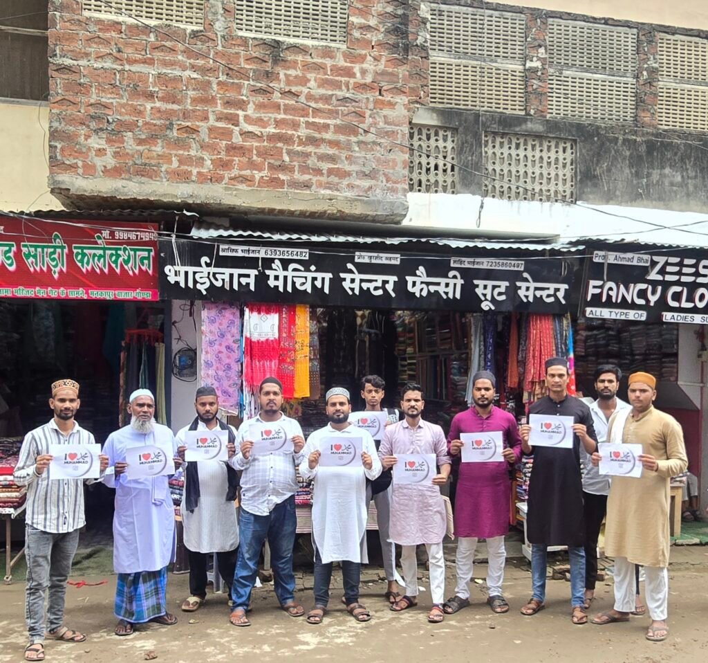 शुक्रवार को जुमे की नमाज के बाद मुस्लिम समाज के दर्जनों नौजवान,बुजुर्ग व बच्चों ने अपने हाथों में I LOVE MUHAMMAD लिखे बैनर उठाकर इस्लाम के आख़री पैग़म्बर हजरत मुहम्मद ﷺ के प्रति सम्मान व अपने मुहब्बत का इजहार जताया।साथ ही कहा की I LOVE MOHAMMAD कहना जुर्म नही है।अगर है तो इसकी हर सजा मुझे मंजूर है।