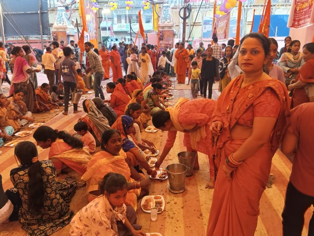 गोन्डा।श्री मेहंदीपुर बालाजी परिवार गोंडा द्वारा अष्टम श्री बालाजी महोत्सव में आयोजित दिव्या संगीत में श्री राम कथा का आयोजन श्री नूरामल मंदिर प्रांगण स्टेशन रोड गोंडा में चल रहे के श्री राम कथा के अंतिम दिन भंडारे का आयोजन शुरू हुआ। जिसमें भारी संख्या में प्रसाद ग्रहण किया।उधर मंच पर विराजमान श्री मेहंदीपुर बालाजी धाम से आए हुए गुरुवर अरविंद शर्मा जी भक्तों के कष्ट का निवारण उपाय बता रहे थे।