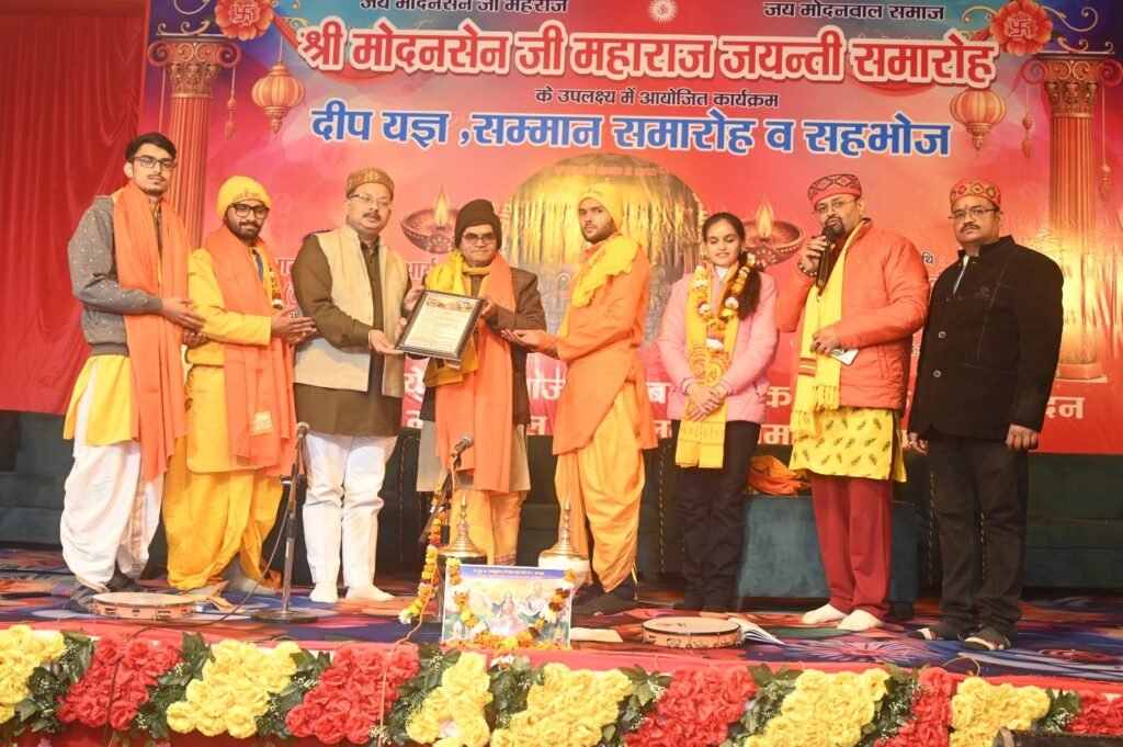 गोन्डा।जिले के गांधी पार्क स्थित संपूर्णानंद सभागार के प्रांगण में श्रीमोदनसेन महाराज जी की जयंती समारोह का आयोजन किया गया। जिसमें गायत्री परिवार गोंडा द्वारा दीप यज्ञ कार्यक्रम देव संस्कृति विश्वविद्यालय के छात्र विशेष वशिष्ठ इस पर साहिवाल मनीष शर्मा एवं निशिका आर्य द्वारा किया गया। जिसमें मुख्य अतिथि के रूप में हलवाई मोदनवाल समाज के प्रांतीय अध्यक्ष आलोक कुमार आर्य का स्वागत व अभिनंदन कर कार्यक्रम का शुभारंभ किया गया।