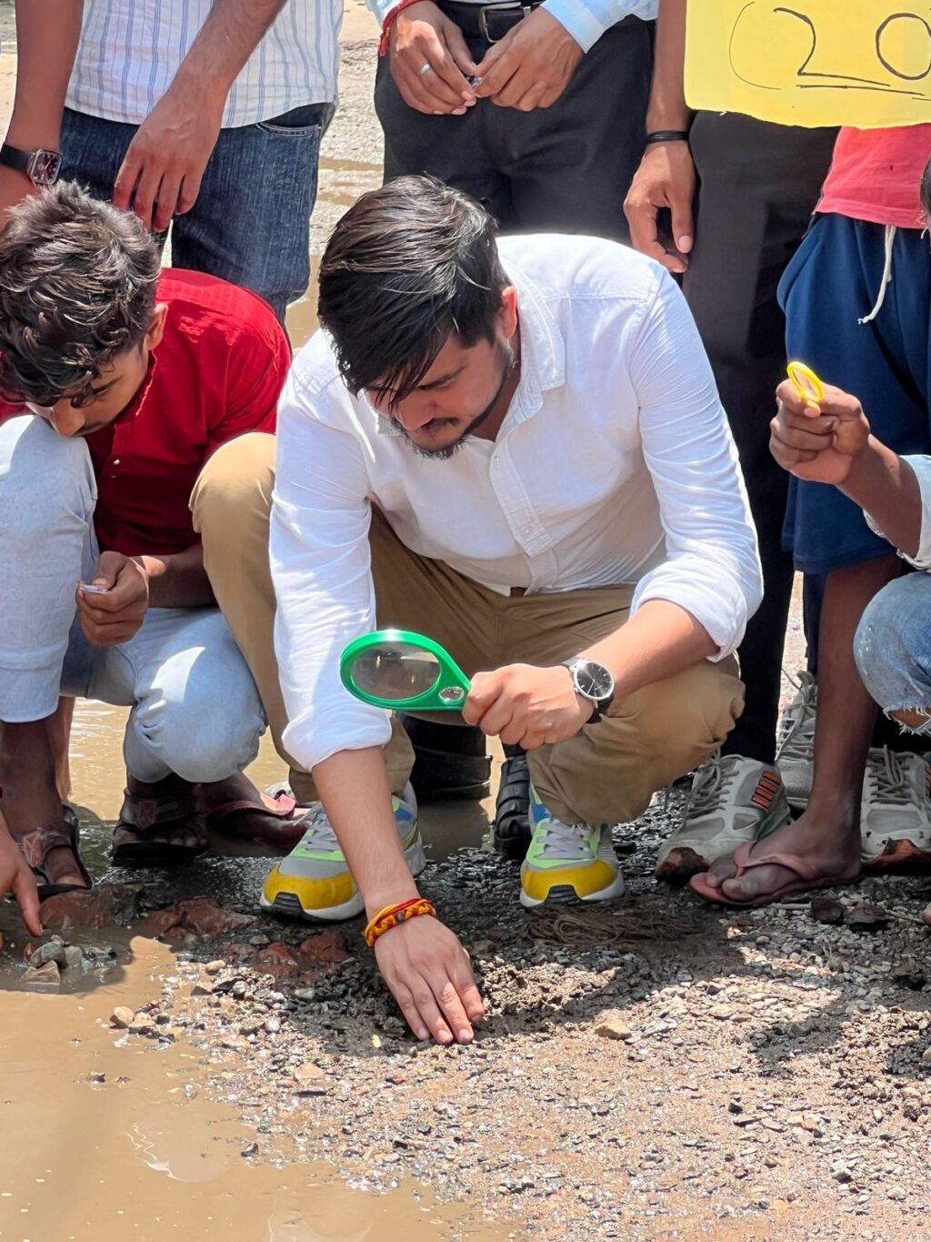 गोण्डा।जिले के मेहनौन विधानसभा क्षेत्र अंतर्गत इटियाथोक- बाबागंज रोड टूटकर गायब हो चुकी है। सड़क की जगह गड्ढा, कीचड व गन्दा पानी ही नजर आ रहा है। यह रोड अब लापता है जिसे आवर्धक लेंस लेकर मंगलवार को छात्र पंचायत के कार्यकर्ता मोहनपुर असिधा गाँव के पास खोजते नजर आये लेकिन उनको यहाँ पर सफलता नहीं मिली। मौके पर रहे राष्ट्रीय छात्र पंचायत के राष्ट्रीय अध्यक्ष शिवम पांडेय ने कहा की करीब 20 किलोमीटर लम्बी यह सड़क गायब हो गई है आज हम लोग कड़ी मेहनत से इसको ढूंढे हैं लेकिन यह नहीं मिली है अगर माननीय मुख्यमंत्री जी को यह रोड मिल जाती है तो कृपया जनता को सूचना देने का काम करें या किसी आम व्यक्ति को यह रोड मिलती है तो छात्र पंचायत उसको ₹1100 इनाम के रूप में भी देगी व पूरी तरह से टूटकर ध्वस्त हो चुकी है। बरसात के बाद इसपर जगह जगह मौजूद गड्ढों मे कीचड व गन्दा पानी जमा हो गया है और यह अब सड़क नहीं बल्कि तालाब हो गई है। लोगो को आवागमन मे भारी समस्या आ रही है। उन्होंने बताया की हम लोगो ने आज यहाँ इस खराब व ख़त्म सड़क को लेकर विरोध प्रदर्शन किया और आवर्धक लेंस लेकर सड़क को खोजने का प्रयास किया लेकिन सड़क नहीं दिखी।