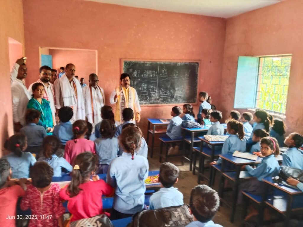 विद्यालय परिवार ने तीनों अतिथियों का पुष्पगुच्छ व अंगवस्त्र से स्वागत किया। अध्यक्ष झा ने विद्यालय की शैक्षणिक गतिविधियों का जायजा लिया। उन्होंने शिक्षकों की उपस्थिति,छात्र संख्या और पाठ्यक्रम की प्रगति की समीक्षा की।साथ ही पुस्तकालय,कक्षा-कक्ष,शौचालय और पेयजल सुविधाओं का भी निरीक्षण किया। अध्यक्ष ने शिक्षकों को पारंपरिक और आधुनिक तरीके से संस्कृत पढ़ाने का निर्देश दिया। उन्होंने कहा कि संस्कृत सिर्फ सांस्कृतिक धरोहर ही नहीं, बल्कि वैज्ञानिक दृष्टिकोण और नैतिकता की आधारशिला है। शिक्षकों को विद्यार्थियों को संस्कृत श्लोक, उपनिषद और गीता से परिचित कराने को कहा। प्रधानाध्यापक ने विद्यालय की समस्याओं और संसाधनों की कमी का ज्ञापन सौंपा। विधायक राम सिंह ने विद्यालय भवन मरम्मत और कक्षा विस्तार में सहयोग का आश्वासन दिया। भाजपा जिला महामंत्री सिप्पू चौबे एवं जिला उपाध्यक्ष सह सांसद प्रतिनिधि रितु जायसवाल ने नैतिक शिक्षा पर जोर दिया। कार्यक्रम के अंत में अतिथियों ने छात्रों से संवाद किया। छात्रों ने संस्कृत श्लोक और भजन प्रस्तुत किए। कार्यक्रम में बड़ी संख्या में शिक्षक और छात्र शामिल हुए।