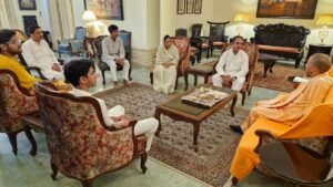 मनकापुर।शुक्रवार को सूबे के मुखिया योगी आदित्यनाथ गोण्डा के सांसद व राज्यमंत्री कीर्तिवर्धन सिँह के निवास मनकापुर कोट पहुँचे, जहाँ उन्होंने सांसद के दिव्यगंत पिता व पूर्व मंत्री राजा आनंद सिँह को श्रद्धांजलि दी।साथ ही मुख्यमंत्री ने परिवार से मुलाक़ात कर अपनी संवेदना व्यक्त क़ी।