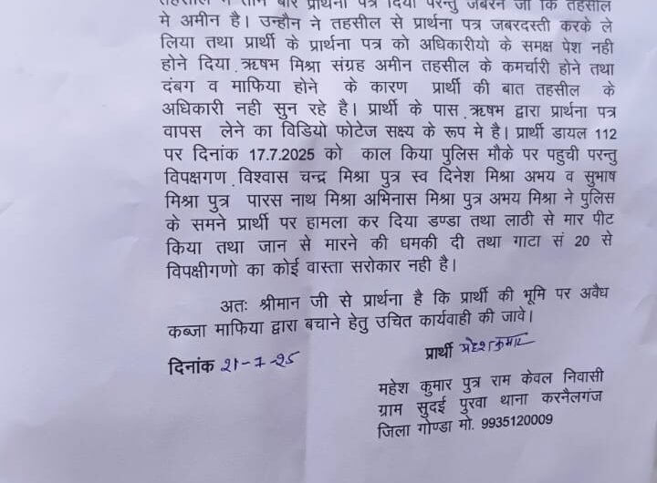 गोण्डा।विकास खंड हलधर मऊ के ग्राम पंचायत सुदई पुरवा के निवासी महेश कुमार पुत्र राम केवल के...